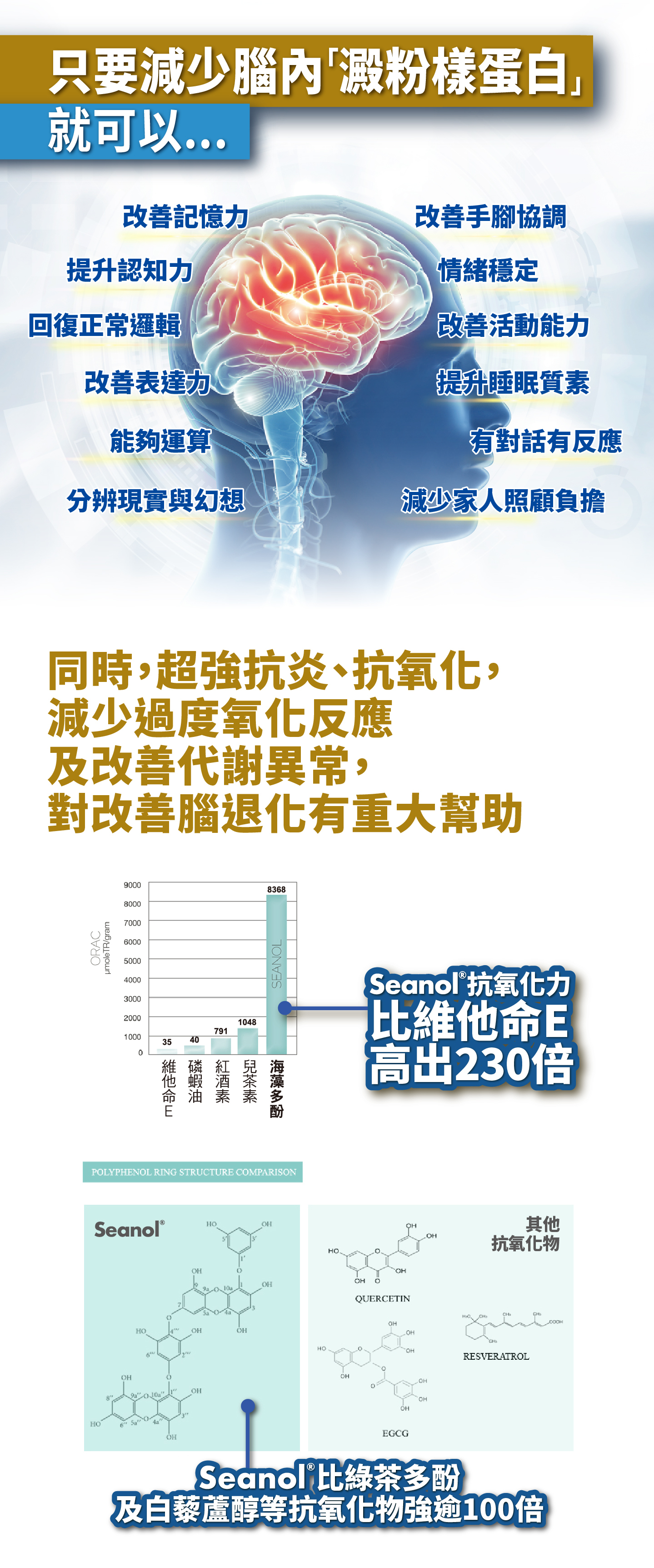 .超強抗氧化力及抗炎力,能激活腦部細胞再生,防止退化