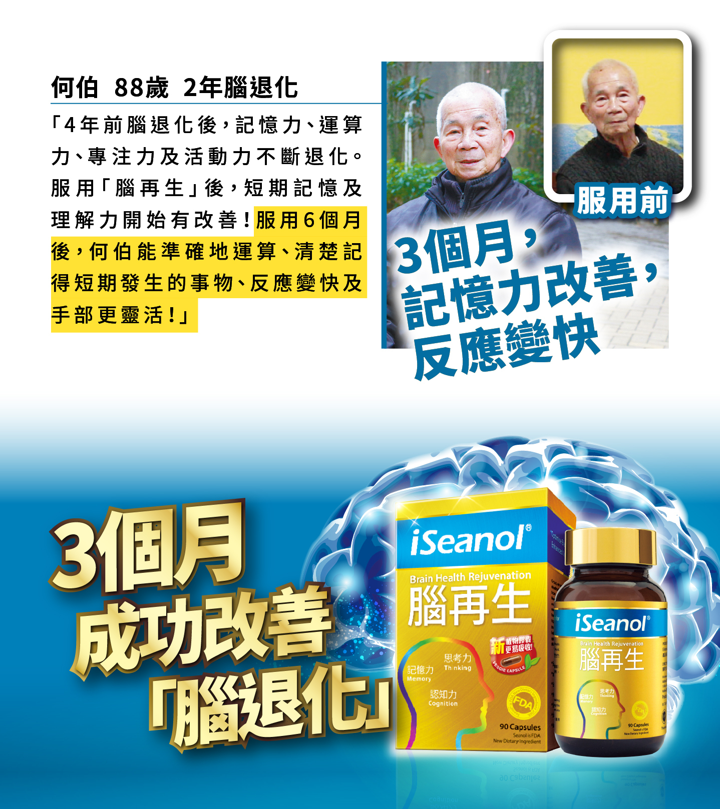 .針對改善腦退化引起的記憶衰退、認知模糊、思考緩慢,活動不協調等問題