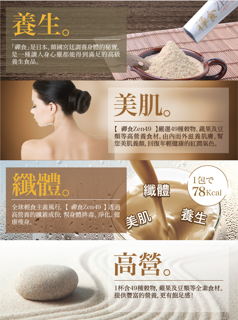 禪食Zen49是日本、韓國宮廷的健康秘寶,讓您可以零負擔的輕斷食用餐體驗,代替多油多肉的外食習慣,幫您實現輕、瘦、美。